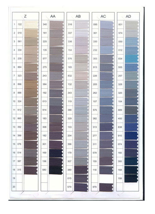 據(jù)了解,YKK色卡共有六頁,編錄有582種顏色,這樣算來每頁平均分布了100個顏色位置,新的YKK色卡中有18個顏色位置是空缺的。色卡主要是用來傳遞顏色信息的一種參照物,需要哪種顏色的產(chǎn)品,從色卡上就能直觀的分辨出來。